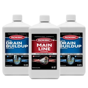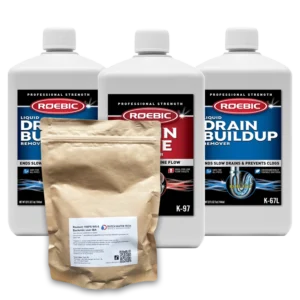 Nous disposons de différentes solutions contre les odeurs nauséabondes et les blocages. Par exemple, les toilettes ne fonctionnent pas correctement ou sentent mauvais ? Nous vous recommandons alors Roebic K97. Si l’évacuation de la cuisine ou de la douche pose des problèmes, vous pouvez utiliser Roebic K67. Celui-ci décompose les dépôts de graisse, de cheveux et de savon.